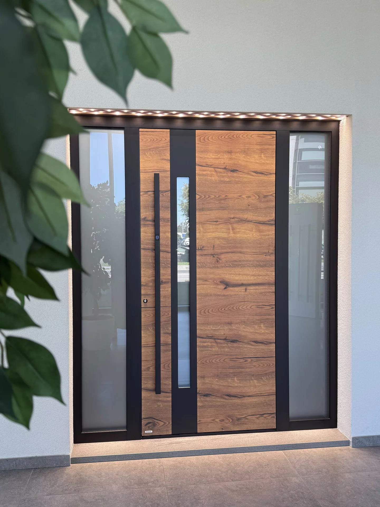 Bevorzugen Sie die Holzoptik oder Dekor, möchten aber dennoch eine Aluminium-Haustür, ist dies selbstverständlich durch authentische Dekore möglich.